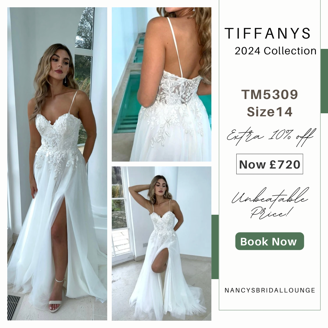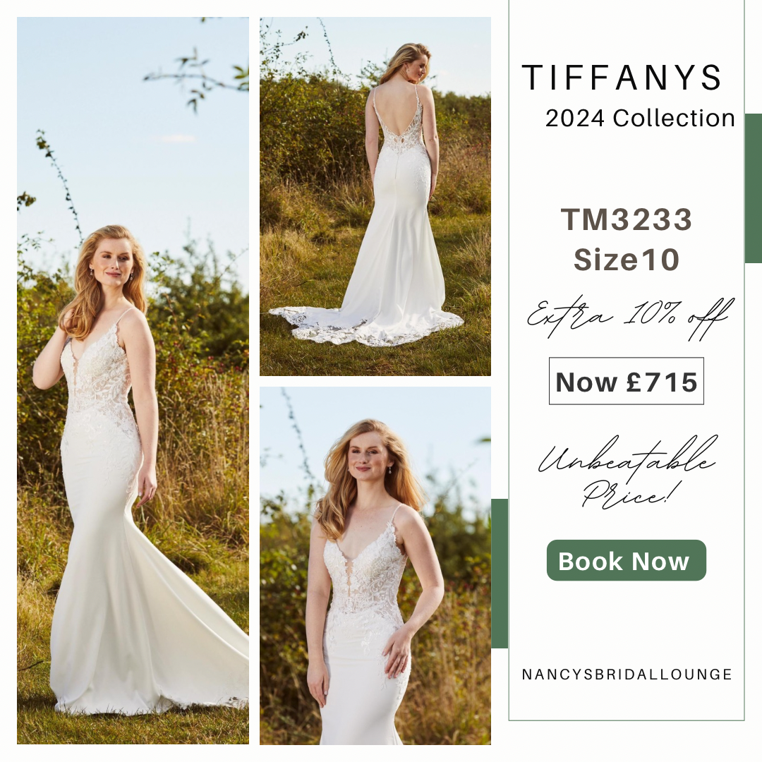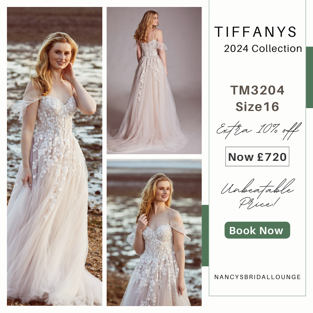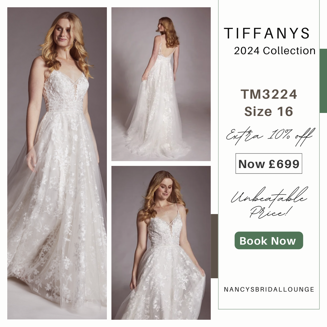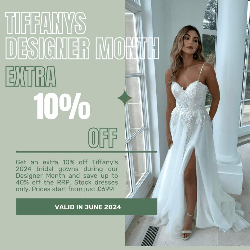 Throughout June, you have the opportunity to enjoy an extra 10% off Tiffanys 2024 bridal gowns, saving up to 40% off the RRP. This discount applies to stock dresses only, and prices start from just £699!